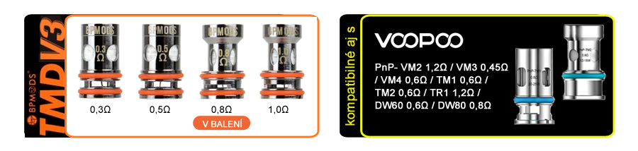 kompatibilita: BP Mods TMD / Vaporesso GTX / Voopoo PnP