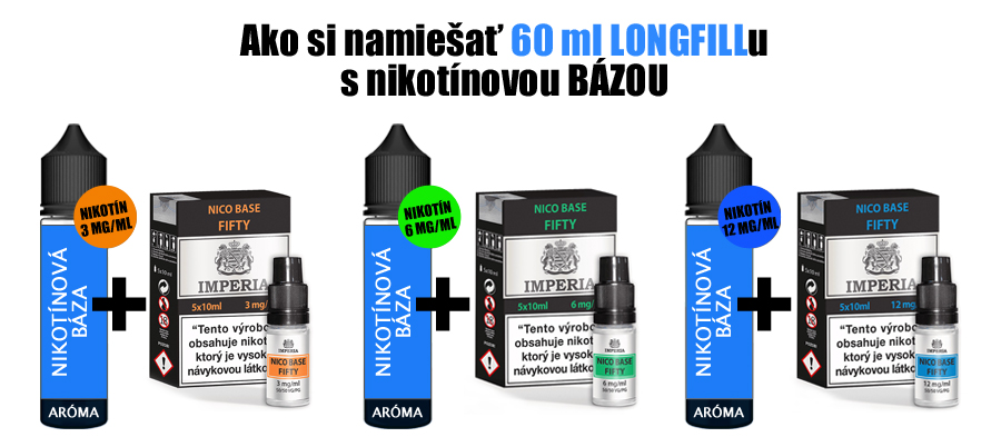 Pre úplných začiatočníkov odporúčame začať tým najjednoduchším riešením – zakúpiť si Shake & Vape LONGFILL s obsahom koncentrovanej arómy a k nemu 5-pack predmiešanej bázy s nikotínom v požadovanej sile (3 mg / 6 mg / 12 mg, prípadne 20 mg/ml).