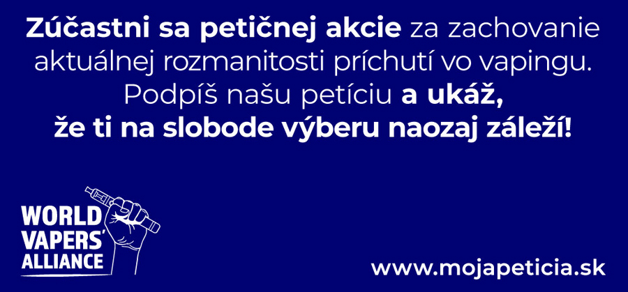 U nás na Slovensku ešte nie je schválený zákaz príchutí. Momentálne je v medzirezortnom konaní, čiže ešte nie je neskoro. Treba upozorniť na neefektivitu zákazu príchutí a vysvetliť poslancom, čo to reálne prinesie pre Slovensko a pre dlhodobých dospelých užívateľov elektronickej cigarety. Jedna lastovička leto nerobí, tak isto, ani jeden vaper VETO neurobí! Musíme sa spojiť. Ak si jeden z tých, ktorých sa dotkne pripravovaný zákaz príchutí a záleží ti na budúcnosti vapingu na Slovensku, prosím podpor našu PETÍCIU! Každý podpis sa ráta. Nemôžeme ostať ticho!