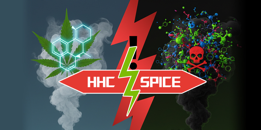 Pri porovnaní HHC a SPICE je nutné pochopiť zásadný rozdiel. HHC je jedna špecifická látka s definovanou chemickou štruktúrou (ktorú možno nájsť aj v konope). Naproti tomu, pojem SPICE neoznačuje jednu látku, ale celú škálu rôznych a často neznámych syntetických chemických zlúčenín. Najväčšie riziko SPICE spočíva v jeho neregulovanom zložení a neznámej, rôznorodej koncentrácii účinných látok, ktoré sa môžu meniť v závislosti od značky či šarže. Hoci obe látky – HHC aj SPICE – sú na zozname zakázaných omamných látok a obe predstavujú vážne zdravotné riziká a potenciál vzniku závislosti, SPICE vychádza jednoznačne nebezpečnejšie. Dôvodom sú jeho omnoho silnejšie, toxickejšie a nepredvídateľné účinky. Fajčenie SPICE, či už vo forme sušiny alebo náplní do elektronických cigariet, predstavuje výrazne väčšie a bezprostrednejšie nebezpečenstvo ako HHC.
