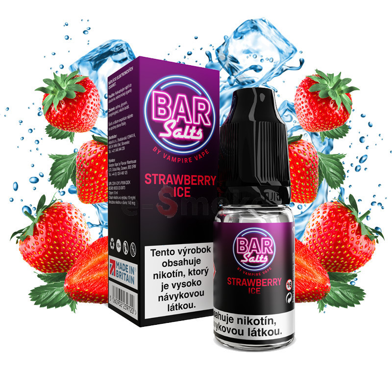 BAR SALTs by Vampire Vape e-liquidy sú špeciálne navrhnuté pre použitie s POD systémami alebo MTL zariadeniami a sú dostupné v 10 ml fľaškách s obsahom nikotínovej soli (nikotín laktát) v sile 10 mg/ml alebo 20 mg/ml. NicSalt od bežnej formy nikotínu sa odlišuje tým, že má nižšiu PH, vďaka ktorej dochádza k rýchlejšiemu a kvalitnejšiemu vstrebávaniu bez dráždivého pocitu v krku.