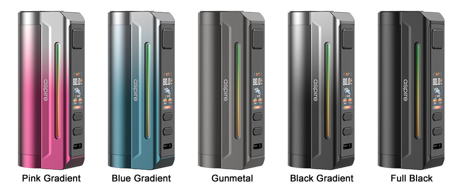 Najnovší model série Zelos disponuje 0,96" farebnou TFT obrazovkou, bočnými LED pásikmi a praktickým tlačidlom na uzamknutie zariadenia. Je vybavený slotom pre batériu typu 18650 (predáva sa samostatne) a štandardným 510 závitom pre atomizéry s max. priemerom 26 mm. Zelos X80 MOD s výkonom 80 W a 5 režimami zahrievania si nájde uplatnenie nielen v rukách MTL vaperov, ale aj u fanúšikov DL vapingu.