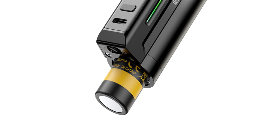 Zelos X80 je kompatibilný s jednou externou batériou typu 18650 (nie je súčasťou balenia), ktorá sa vkladá zospodu po odskrutkovaní spodného krytu batérie. Vďaka rýchlemu nabíjaniu 2 A cez USB Type-C môžeš tráviť viac času vapovaním a menej času čakaním na dobitie.