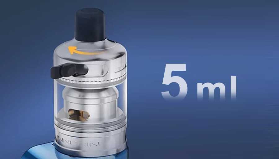 Plniaci otvor a prívod vzduchu sú integrované do toho istého horného krúžku. Pre naplnenie stačí otočiť horný prstenec a otvoriť silikónovú krytku, cez ktorú sa do nádržky zmestí 5 ml e-liquidu. Dvojité uzavretie plniaceho otvoru zabezpečí dvojitú ochranu proti vytekaniu.