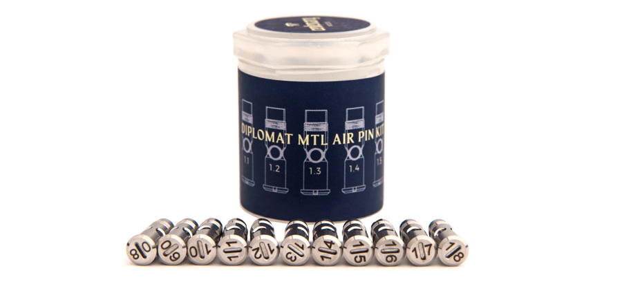 Vzduchové vložky v podobe vymeniteľných centerpinov sú určené pre atomizér Diplomat V1.5 MTL RTA. Umožňujú úpravu prúdenia vzduchu od utiahnutého MTL až po voľnejšie RDL. Balenie obsahuje 11 kusov centerpinov (air pinov) s otvormi o veľkosti 0,8 / 0,9 / 1,0 / 1,1 / 1,2 / 1,3 / 1,4 / 1,5 / 1,6 mm.