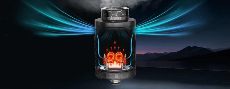 Hellvape to opäť zabil! Legendárny Dead Rabbit je späť. RTA atomizér s priemerom 26 mm, určený pre jednu alebo dve cievky, prichádza s nerezovým ochranným krytom sklíčka, kapacitou od 3,5 do 5,5 ml a praktickým horným plnením. Nastaviteľný horný prietok vzduchu, ideálny pre priame ťahanie do pľúc (DL), zaručuje výnimočnú chuť vďaka novému 48-dierovému honeycomb systému prúdenia vzduchu.