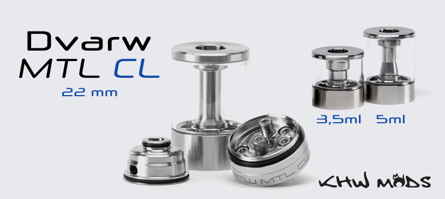 Nový KHW MODS Dvarw CL MTL RTA s priemerom 22 mm je určený na vapovanie z úst do pľúc (MTL) a je dostupný s kapacitou 3,5 ml a 5 ml.