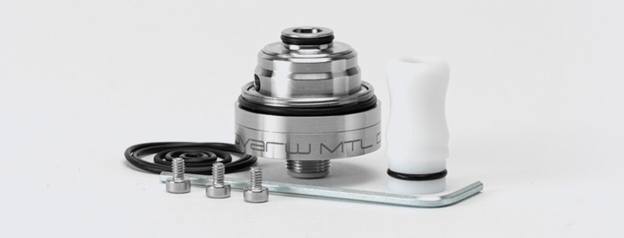 V balení Dvarw CL MTL RTA nájdeš 510 driptip z teflonu (PTFE), sadu tesniacich krúžkov, imbusový kľúč a základňu s predinštalovanou vzduchovou redukciou 1 × 1,2 mm. Súčasťou balenia je aj nádržka s kapacitou 3,5 ml alebo 5 ml, v závislosti od zvolenej verzie.